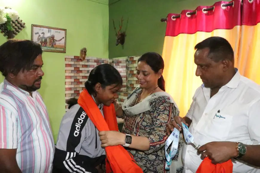 जमशेदपुर/मानगो, 4 अप्रैल 2026 – लौहनगरी जमशेदपुर की एक और बेटी ने खेल की दुनिया में राष्ट्रीय स्तर पर परचम लहराकर पूरे झारखंड का मस्तक ऊंचा कर दिया है। चेन्नई में आयोजित राष्ट्रीय किक बॉक्सिंग चैंपियनशिप में शानदार प्रदर्शन कर पदक जीतने वाली 'गोल्डन गर्ल' दिव्या सोय के शहर लौटते ही स्वागत और अभिनंदन का सिलसिला तेज हो गया है। इसी कड़ी में शनिवार को मानगो के बालीगुमा स्थित उनके निवास पर दिग्गजों का जमावड़ा लगा। पूर्व स्वास्थ्य मंत्री श्री बन्ना गुप्ता और मानगो की मेयर श्रीमती सुधा गुप्ता ने खुद दिव्या के घर पहुँचकर उन्हें सम्मानित किया, जिससे न केवल उस नन्ही खिलाड़ी बल्कि पूरे खेल जगत का मनोबल बढ़ा है।